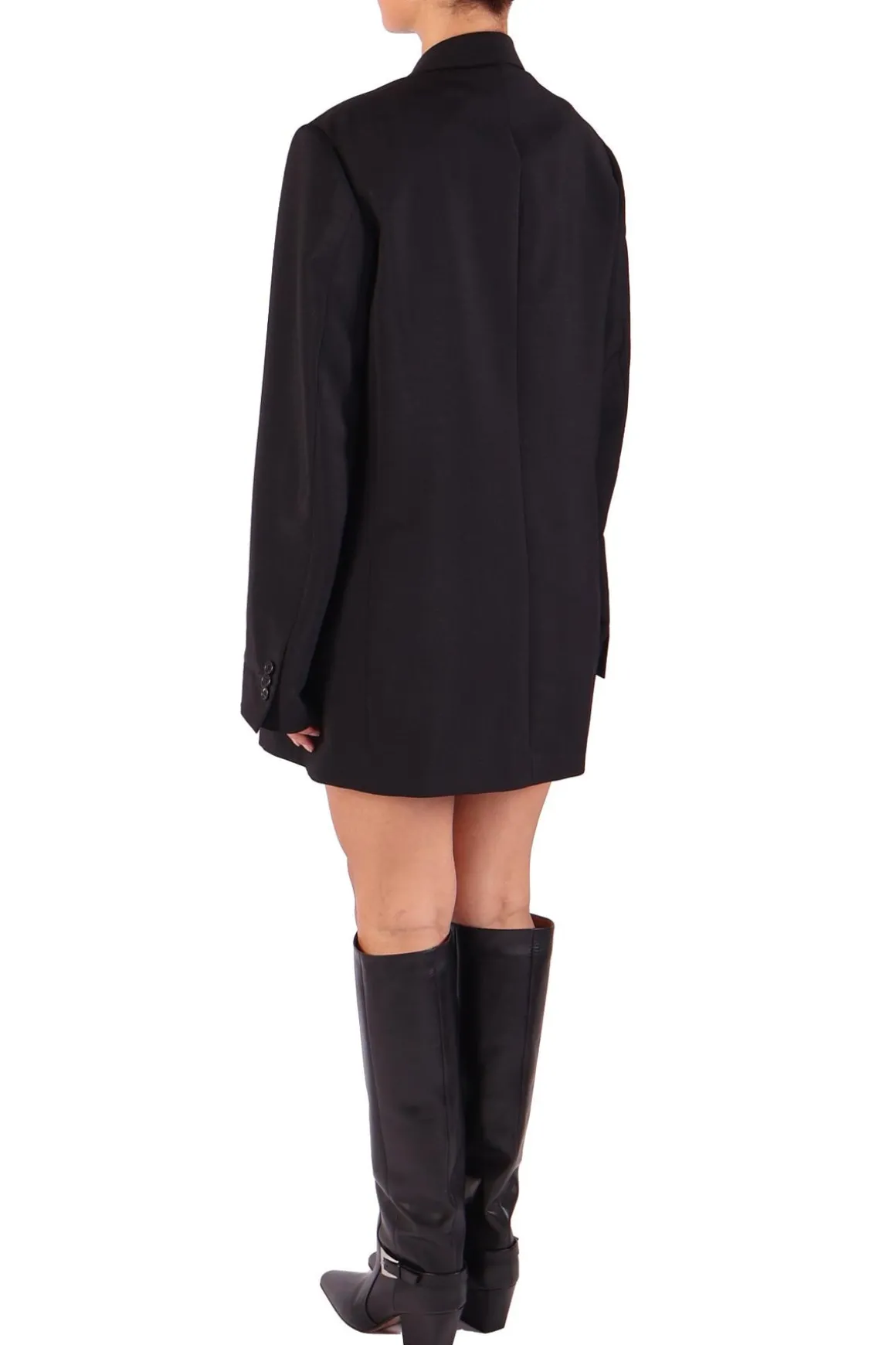 Deze zwarte blazer van Loewe is een perfecte balans tussen klassieke verfijning en moderne flair. Het strakke, gestructureerde ontwerp wordt gekarakteriseerd door een subtiele twist in de afwerking, wat de blazer een unieke, eigentijdse uitstraling geeft. Gemaakt van hoogwaardige stoffen, is dit een tijdloos stuk dat zich gemakkelijk leent voor zowel formele als casual styling.