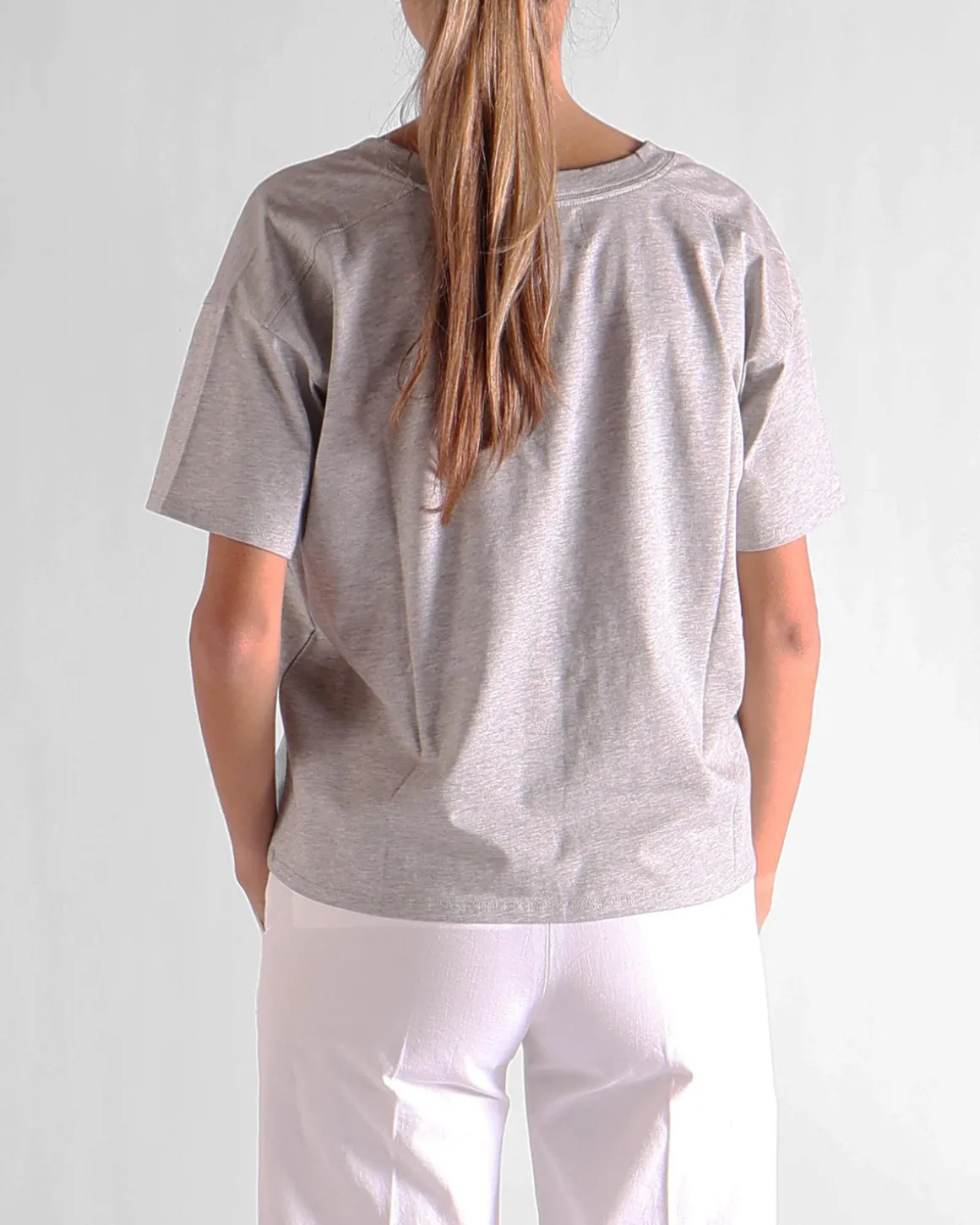 Dit grijze T-shirt van Loulou Studio heeft een elegante V-hals en een subtiel, modern ontwerp. Gemaakt van zachte, ademende materialen biedt het ultiem comfort en een flatterende pasvorm. Ideaal om casual te dragen of te layeren onder een vest of blazer voor een verfijnde uitstraling.