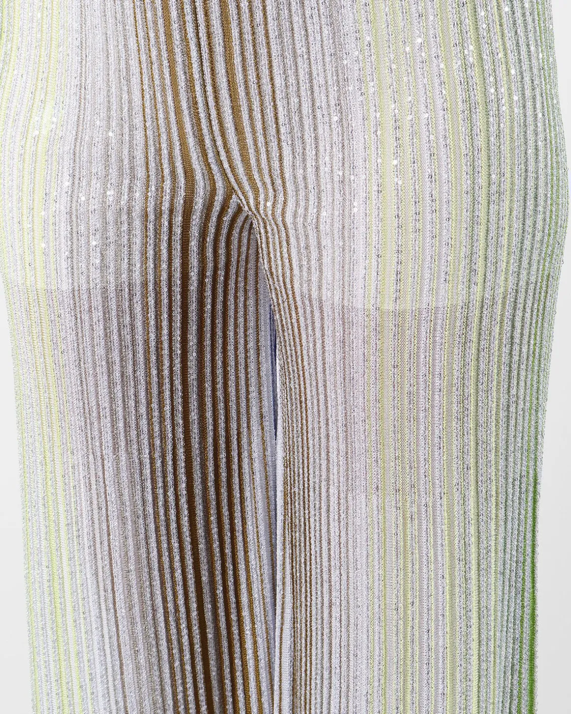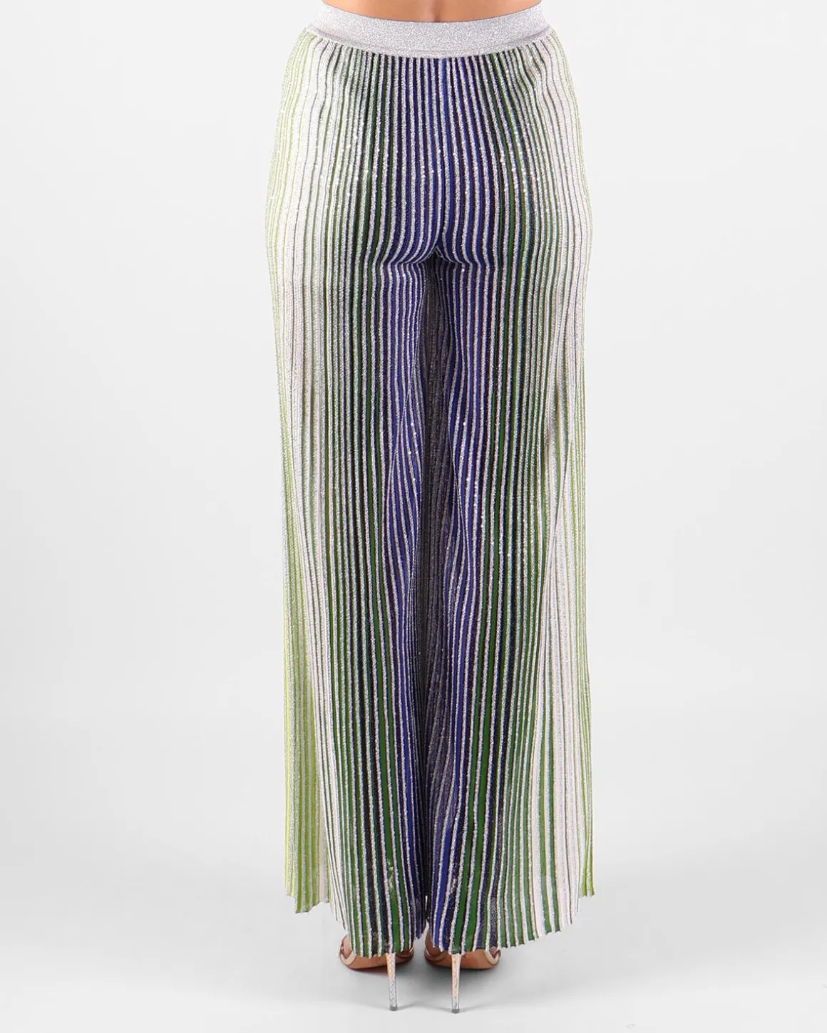 Deze broek heeft de kenmerkende rechte lijnen van Missoni, met kleine sequins die subtiel in de stof zijn geweven, wat zorgt voor een verfijnd shimmer-effect. Het resultaat is een chique, glamoureuze uitstraling die perfect past bij een elegante avondlook. De comfortabele pasvorm benadrukt de figuur, terwijl de sequins een delicate sprankeling toevoegen. Combineer de broek met een eenvoudige top en hakken voor een moderne, stijlvolle look, ideaal voor een avondje uit.