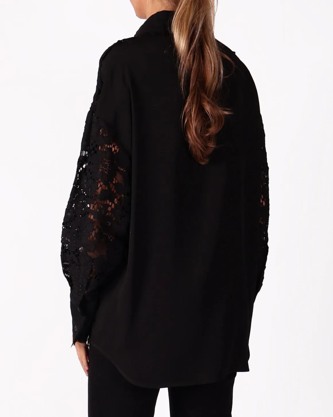 Deze zwarte kanten blouse van Nude straalt verfijnde sensualiteit uit. Het ontwerp is gemaakt van delicate kant en heeft een doorschijnende afwerking die een subtiel, elegante look creëert. De blouse is veelzijdig en kan zowel chic als casual worden gestyled, perfect voor elke gelegenheid waarbij je een statement wilt maken.