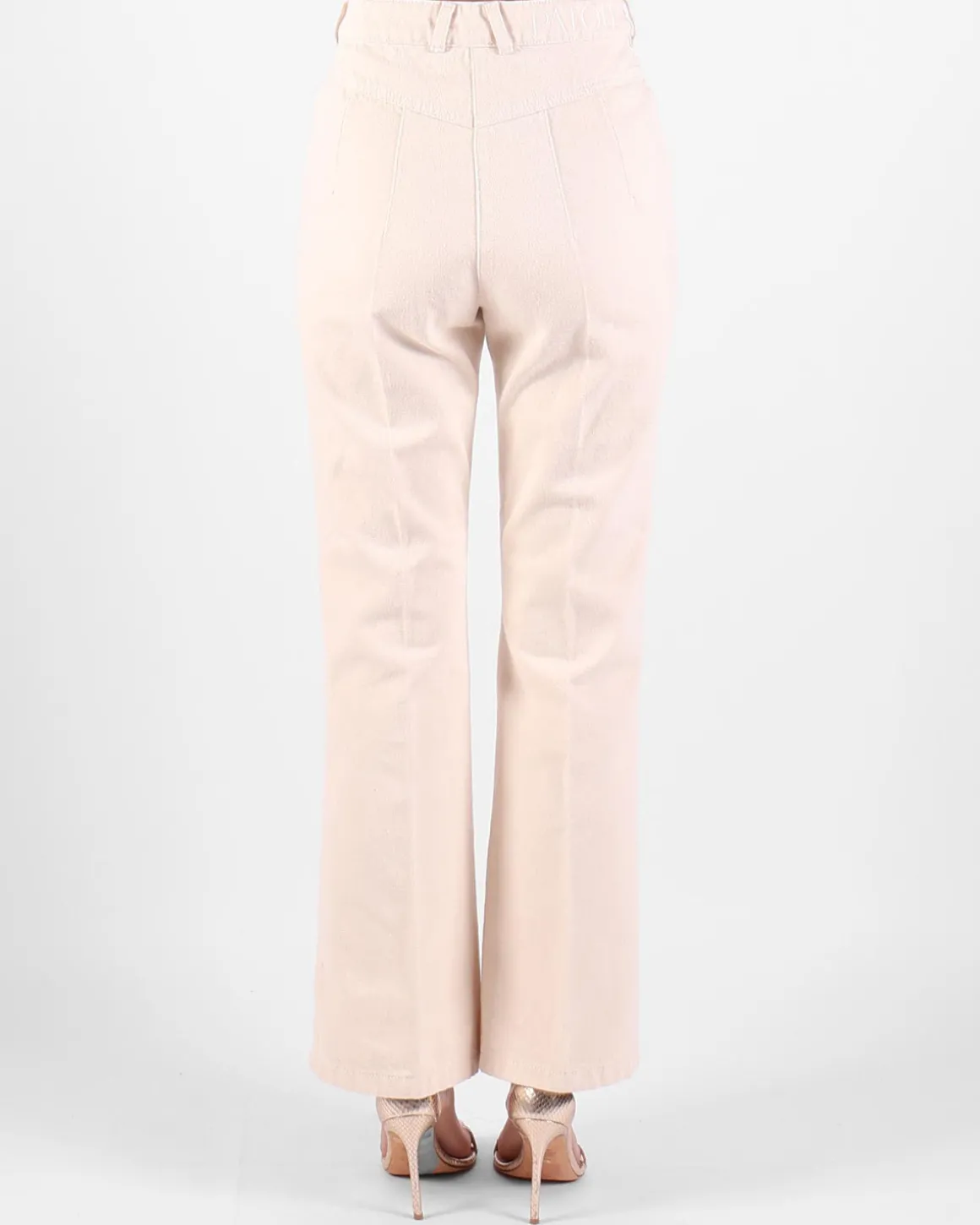 Deze crèmekleurige high-waist jeans van Patou combineert een elegante, vintage-geïnspireerde stijl met moderne details. De flared pasvorm zorgt voor een flatterend silhouet, terwijl de goudkleurige details een luxueuze touch toevoegen. Perfect om moeiteloos chique en tijdloos voor de dag te komen.