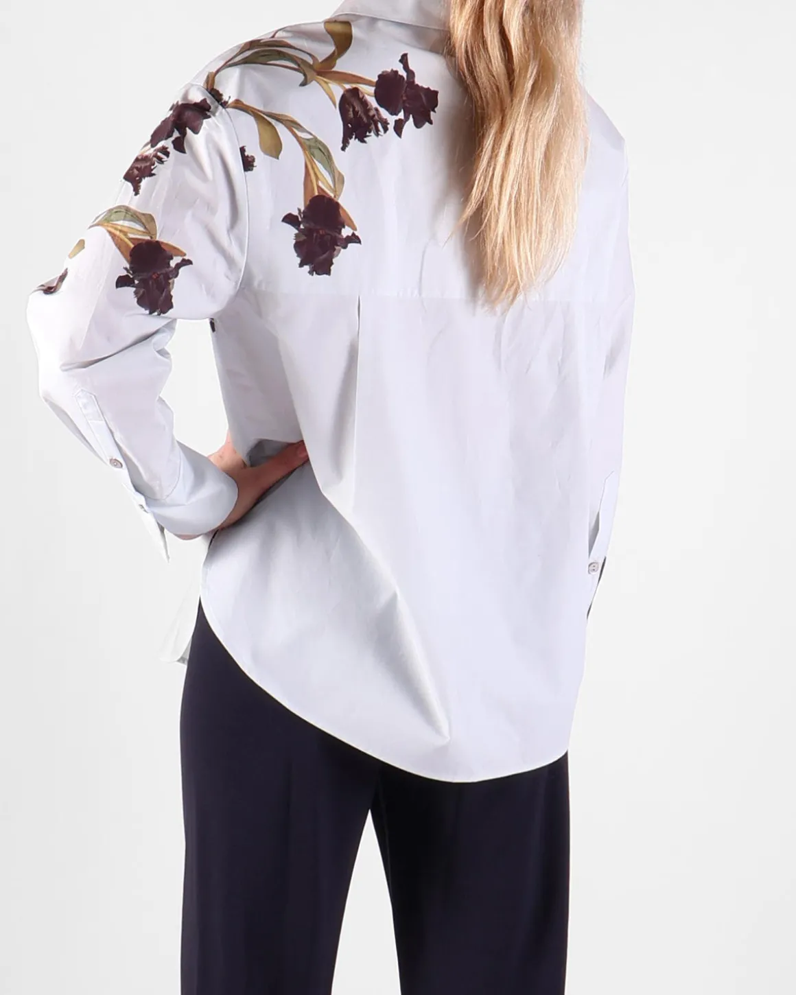 - Het model is 175 cm lang en draagt maat S.