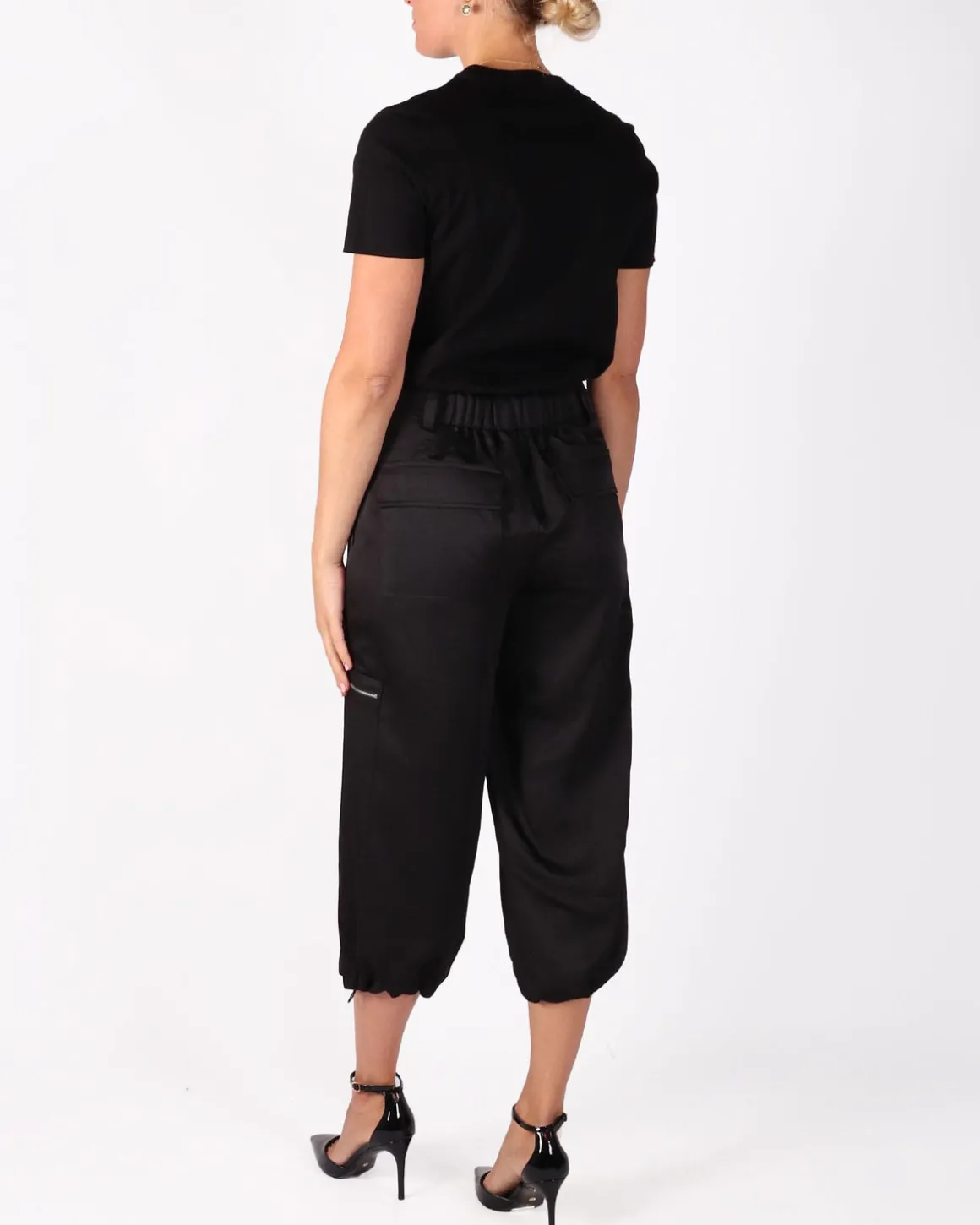 Deze korte zwarte pantalon van Vince combineert tijdloze elegantie met moderne functionaliteit, dankzij de praktische steekzakken. Het strakke, verfijnde ontwerp maakt deze pantalon veelzijdig, perfect voor zowel zakelijke als casual outfits. Draag het met een blouse en hakken voor een nette look, of met een T-shirt en sneakers voor een meer ontspannen, stijlvolle uitstraling.